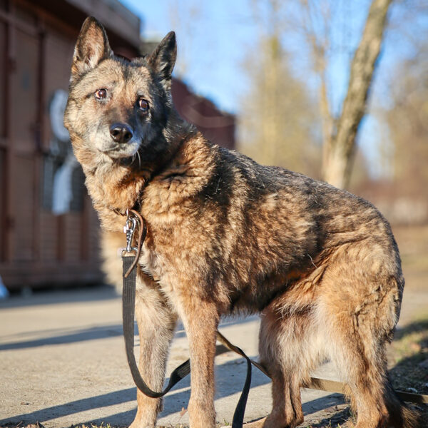Voljere gyvena tvarkingai, su pavadėliu vaikšto puikiai. Pasiruošusi mokytis komandų ir dienų dienas džiuginti savo žmogų.