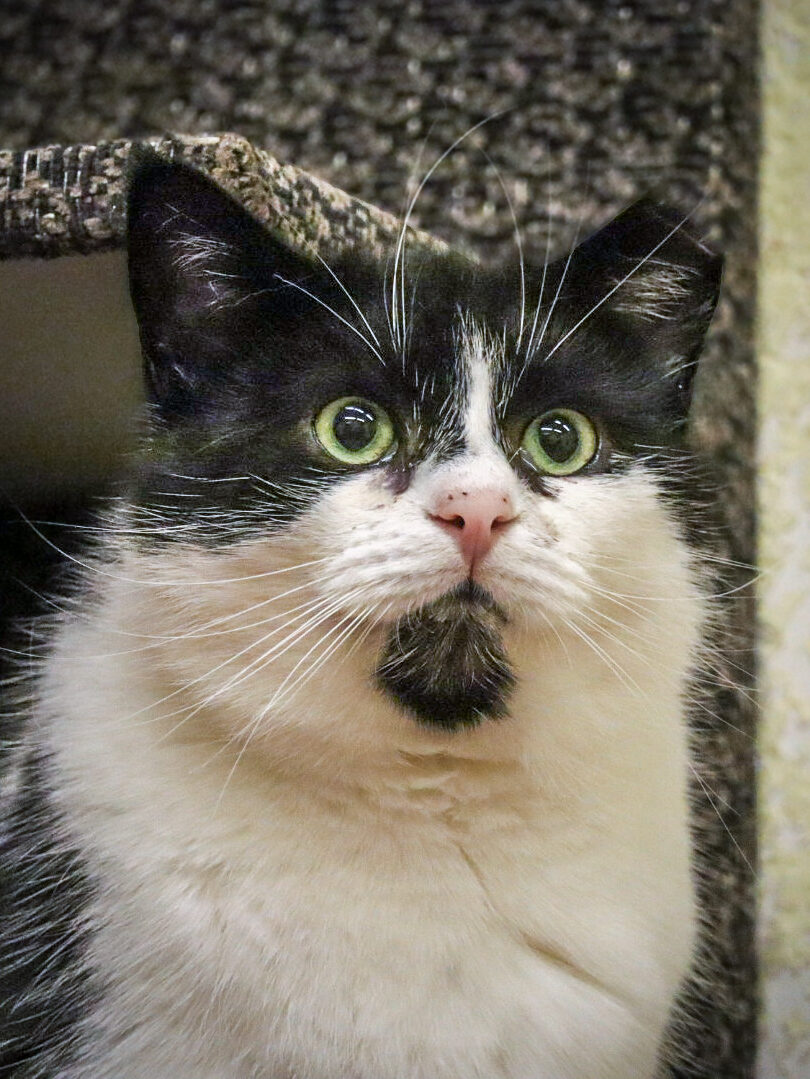 🏘️ Nefritas į prieglaudą pateko per PSP programą „Pagauk–sterilizuok–paleisk“ iš probleminės vietovės, kur gyveno daug benamių kačių.