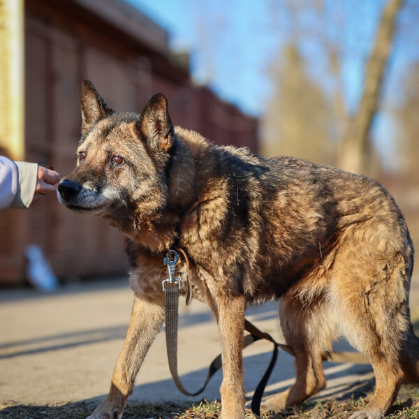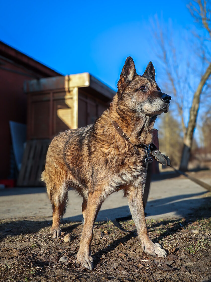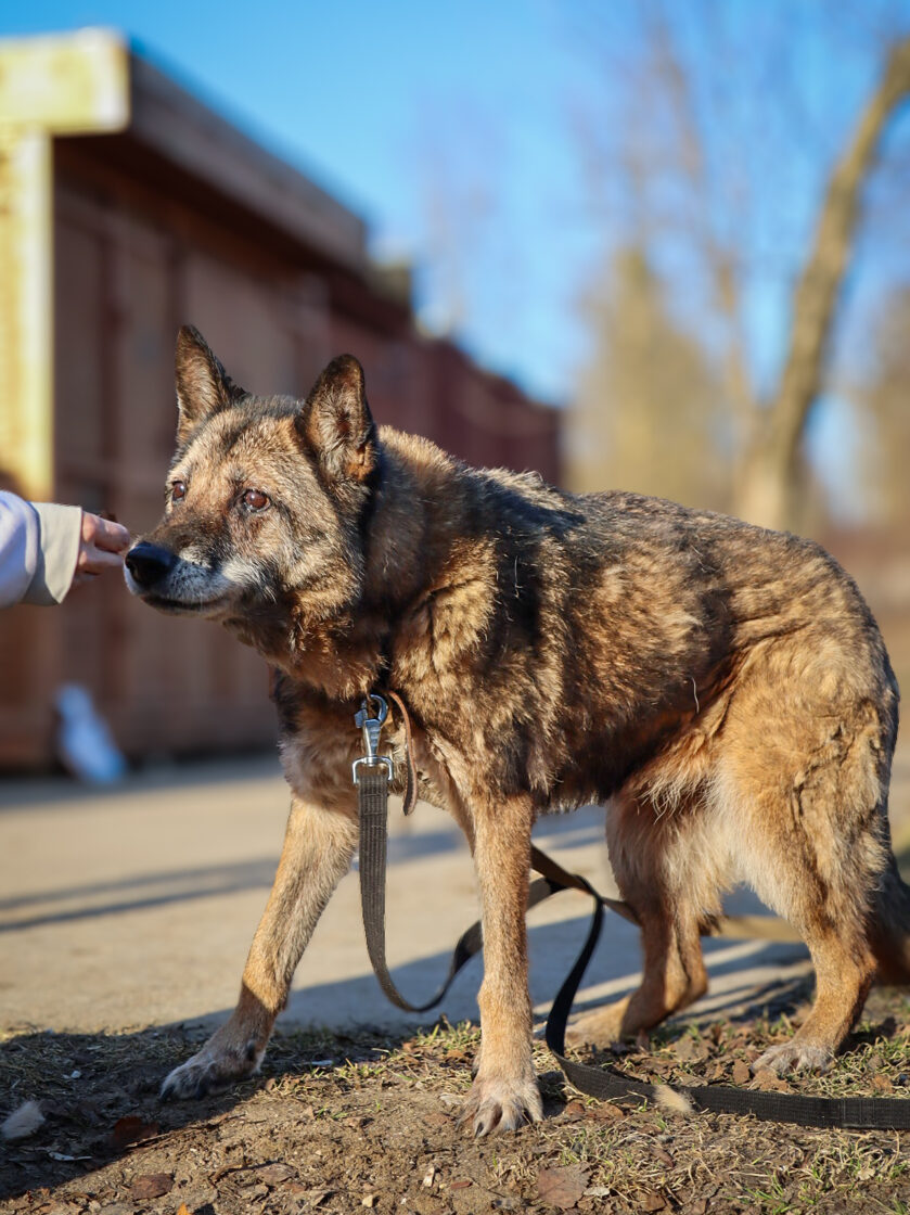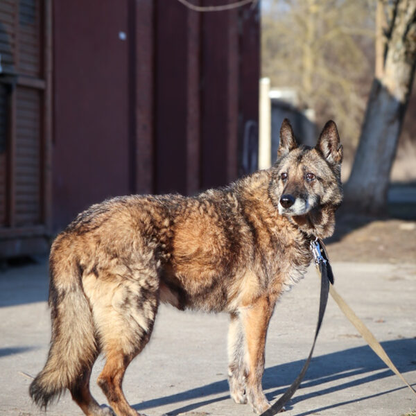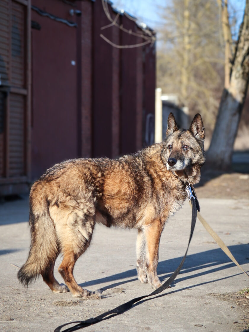 Į prieglaudą pateko po sudėtingo etapo – buvo rasta gulinti savo būdoje, nusilpusi, praradusi koordinaciją. Būklė atrodė rimta, tačiau suteikus pagalbą ir pradėjus gydymą, ji pamažu atsistatė. Veterinarų vertinimu, tai galėjo būti idiopatinis vestibuliarinis sindromas – dažniau pasitaikantis vyresniems šunims, sukeliantis pusiausvyros sutrikimus, tačiau dažniausiai sėkmingai suvaldomas.