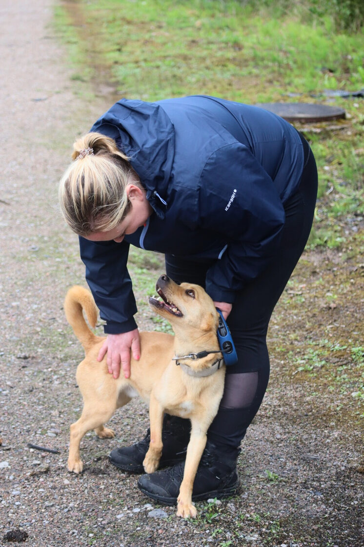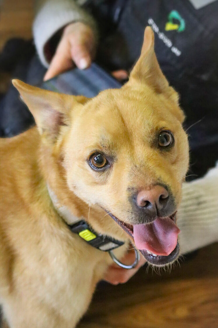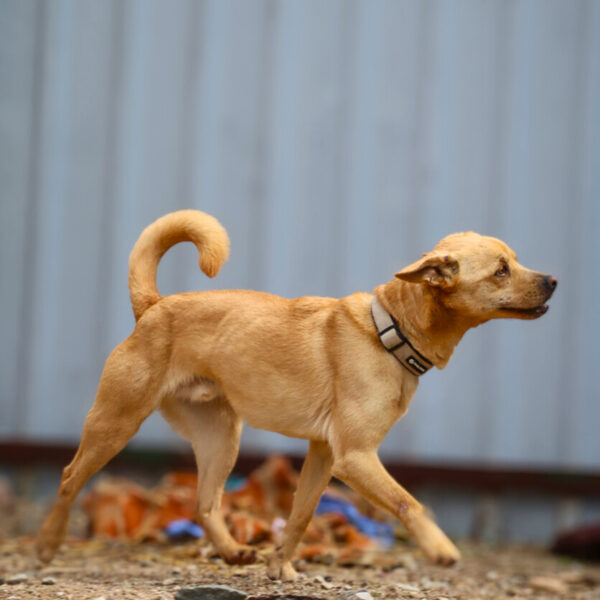 Į prieglaudą pateko 2024 m. gruodžio mėnesį kartu su savo likimo broliu Ogiu, kai buvę šeimininkai dėl pasikeistusių gyvenimo sąlygų nebegalėjo jais pasirūpinti.