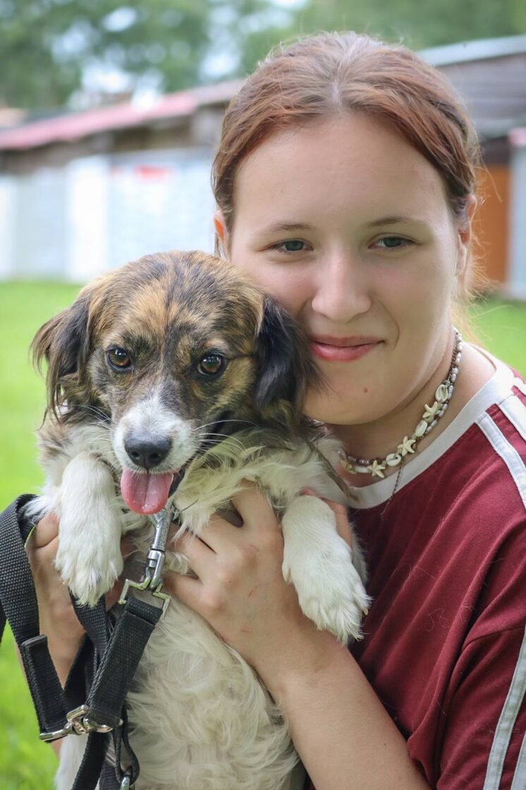 Į prieglaudą pateko 2024 m. rugsėjį kartu su Mortu ir Mo, kai trijulė atklydo į sodybą Alytaus rajone, netoli Simno.