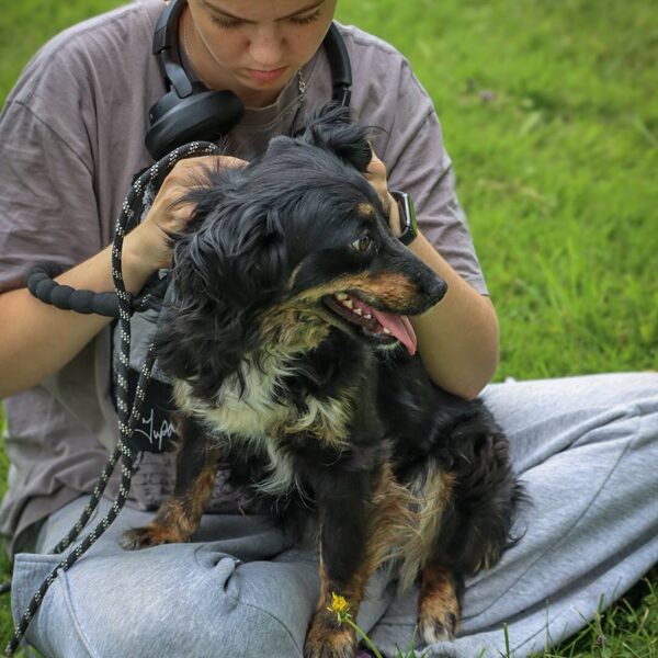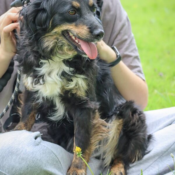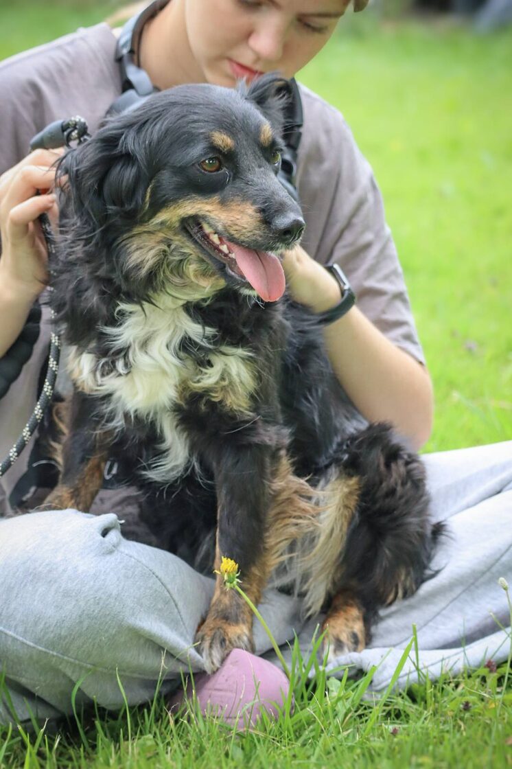 Į prieglaudą pateko 2024 m. rugsėjį kartu su Mortu ir Mia, kai trijulė atklydo į sodybą Alytaus rajone, netoli Simno.