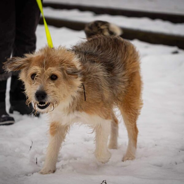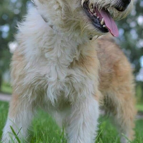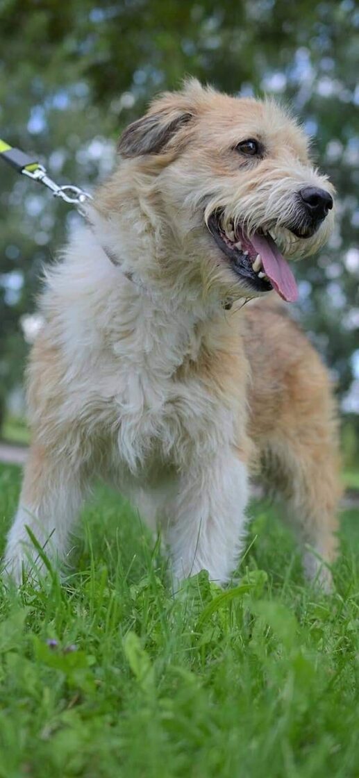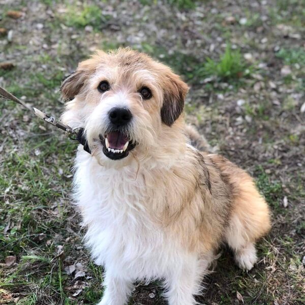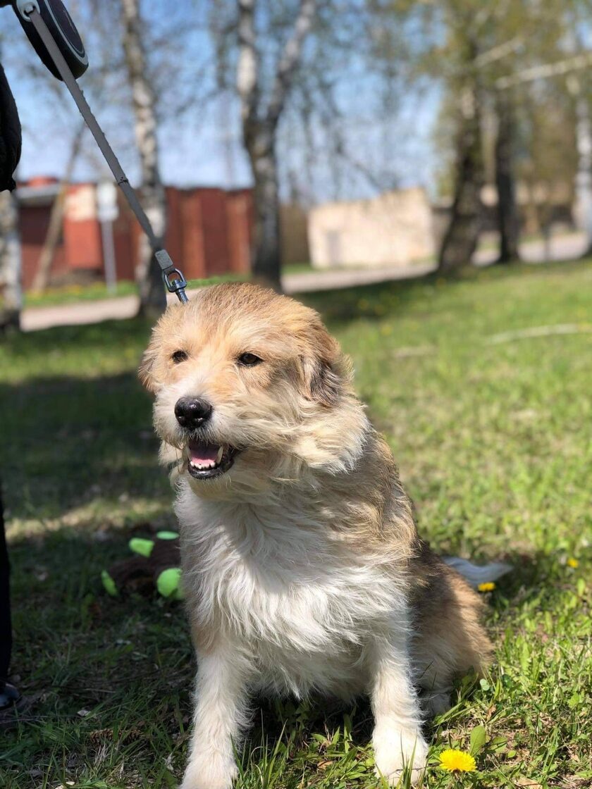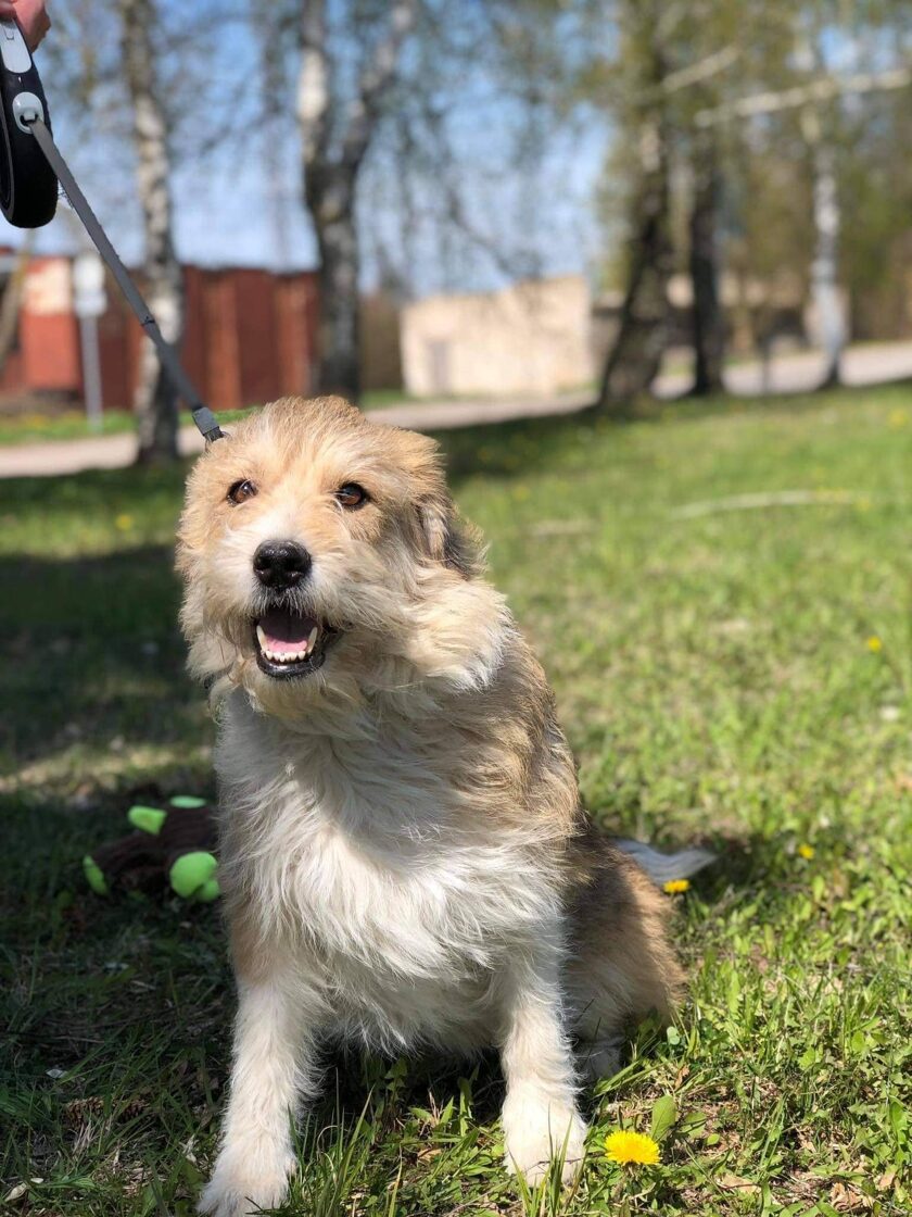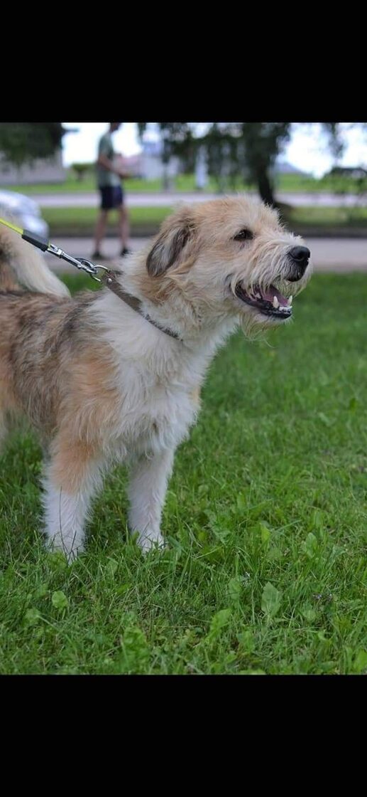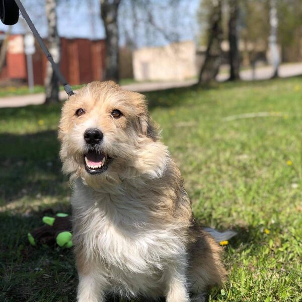 Puikiai ir džiaugsmingai vaikšto su pavadžiu bei sutaria su kai kuriais gyvūnais.