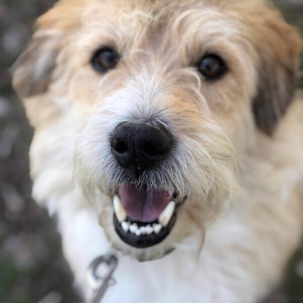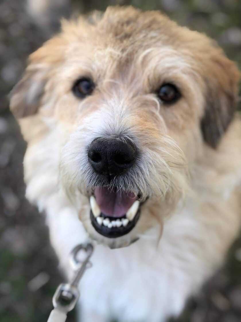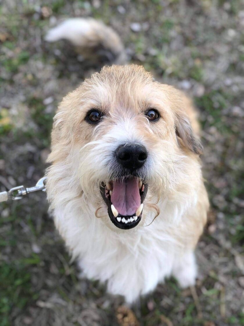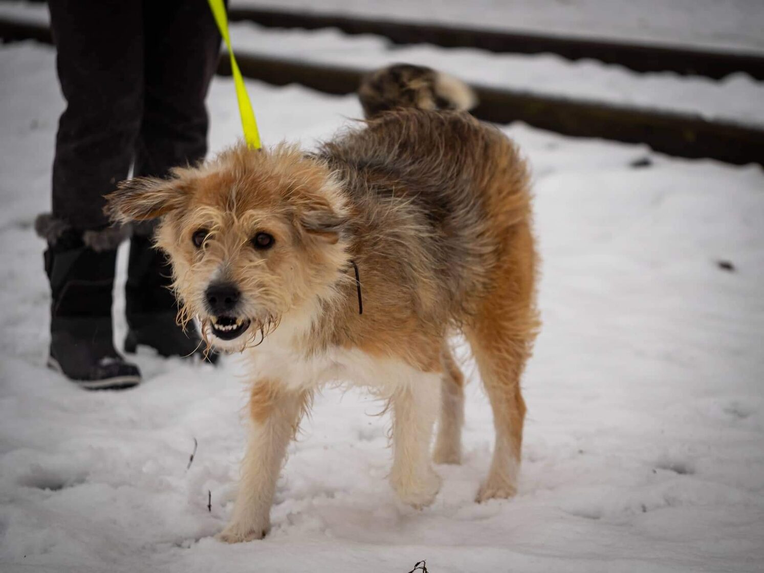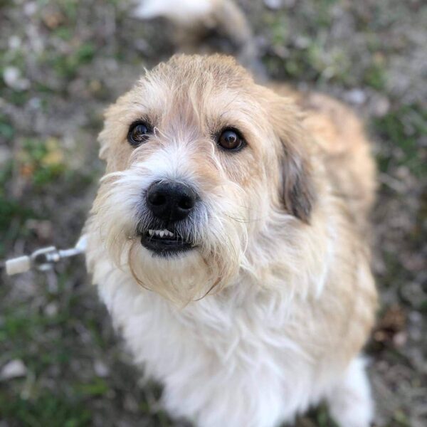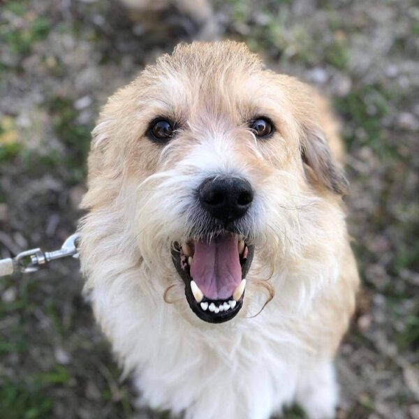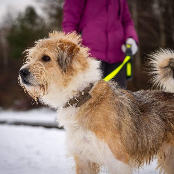Puikiai ir džiaugsmingai vaikšto su pavadžiu bei sutaria su kai kuriais gyvūnais.