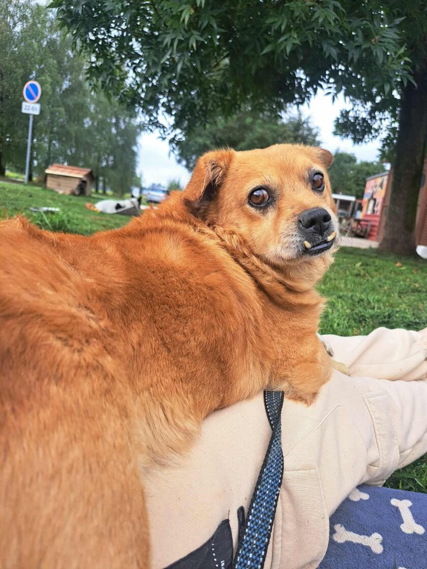 Į prieglaudą pateko 2025 metų liepos mėnesį iš Seirijų, kai priklydo pas žmones į sodybą. Dvi savaites laikėsi teritorijos, šeimininkai taip ir neatsirado.
